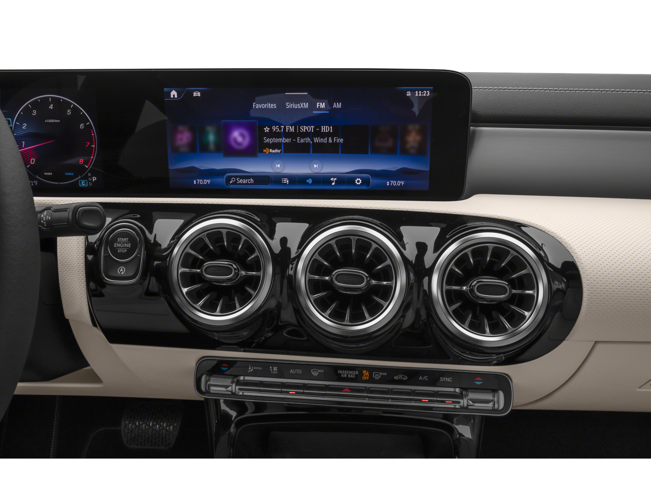 - Radio: MBUX Multimedia System -inc: 10.25" touchscreen multimedia display, 5 USB-C ports, smartphone integration, voice control including natural language understanding and keyword activation ("Hey Mercedes") and Bluetooth connectivity
